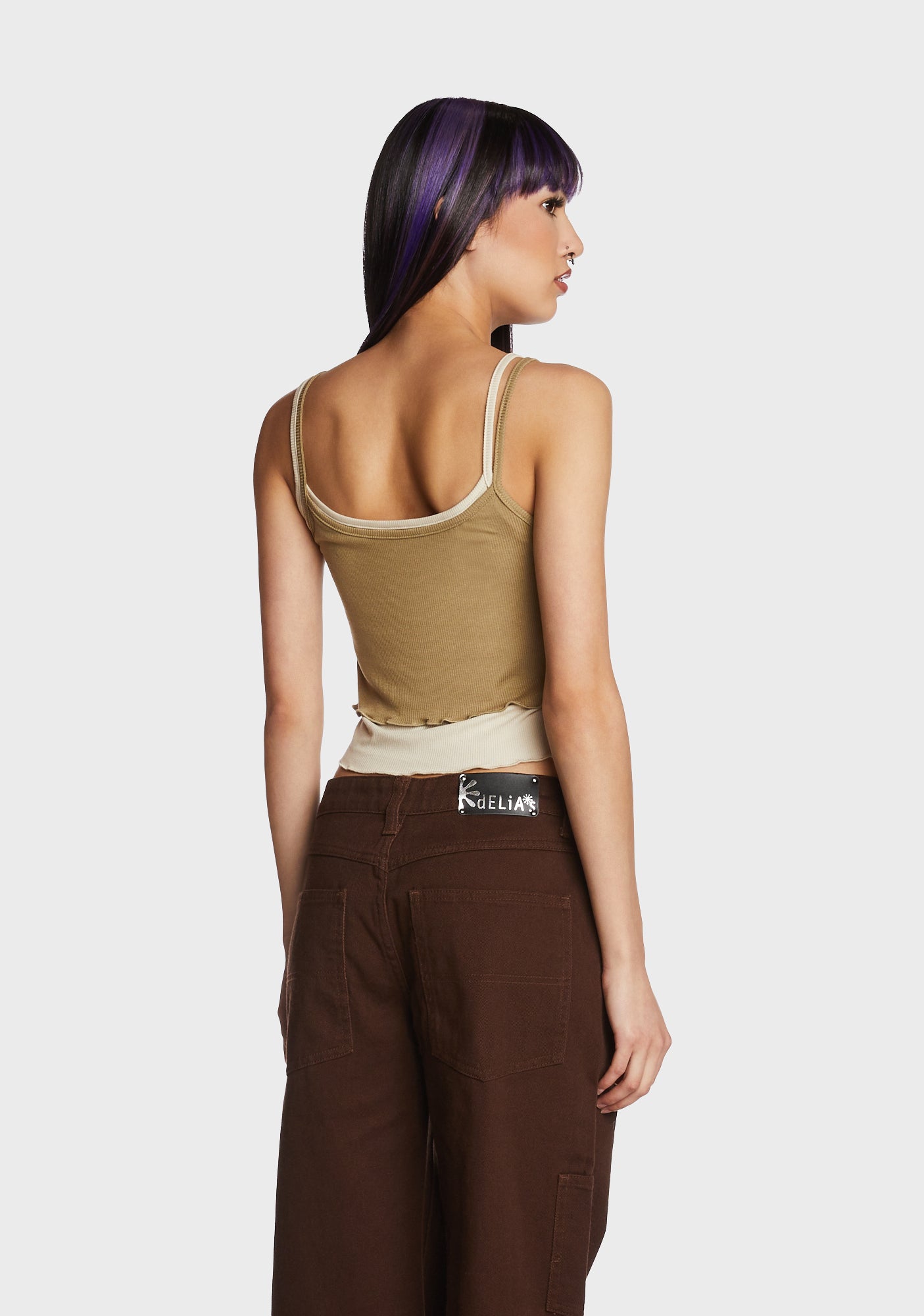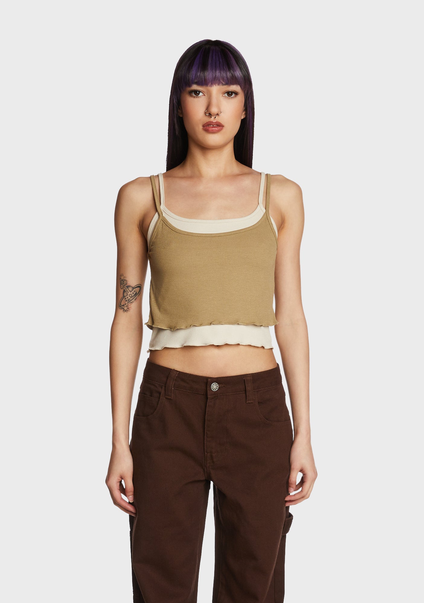 Knit Ribbed Crop Tank Top Brown Dolls Kill